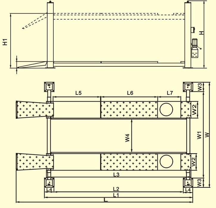 Tên sản phẩm: Cầu nâng 4 trụ 6.5 tấn Kawasami KW-6.5F4