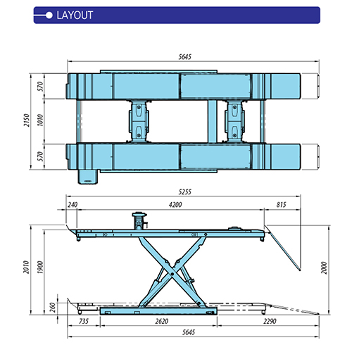 Kích thước tổng thể : 5,645(L) X 2,150(W) X 260(H) mm