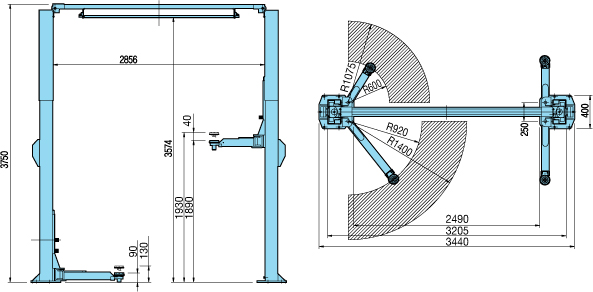 Chiều rộng giữa 2 trụ : 2856 mm (Đo từ mép trong hai trụ)
