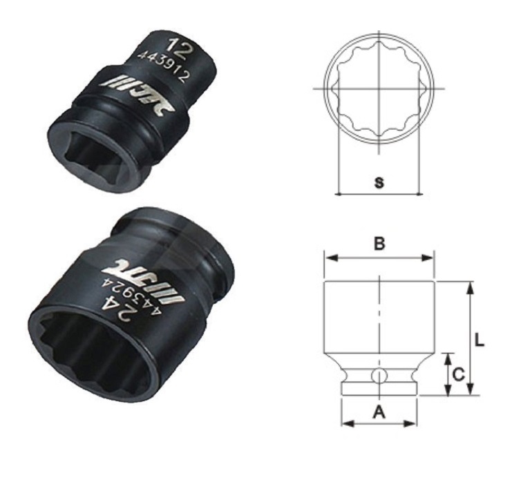 Đầu khẩu đen 12 cạnh 1/2" JTC-443910-443924