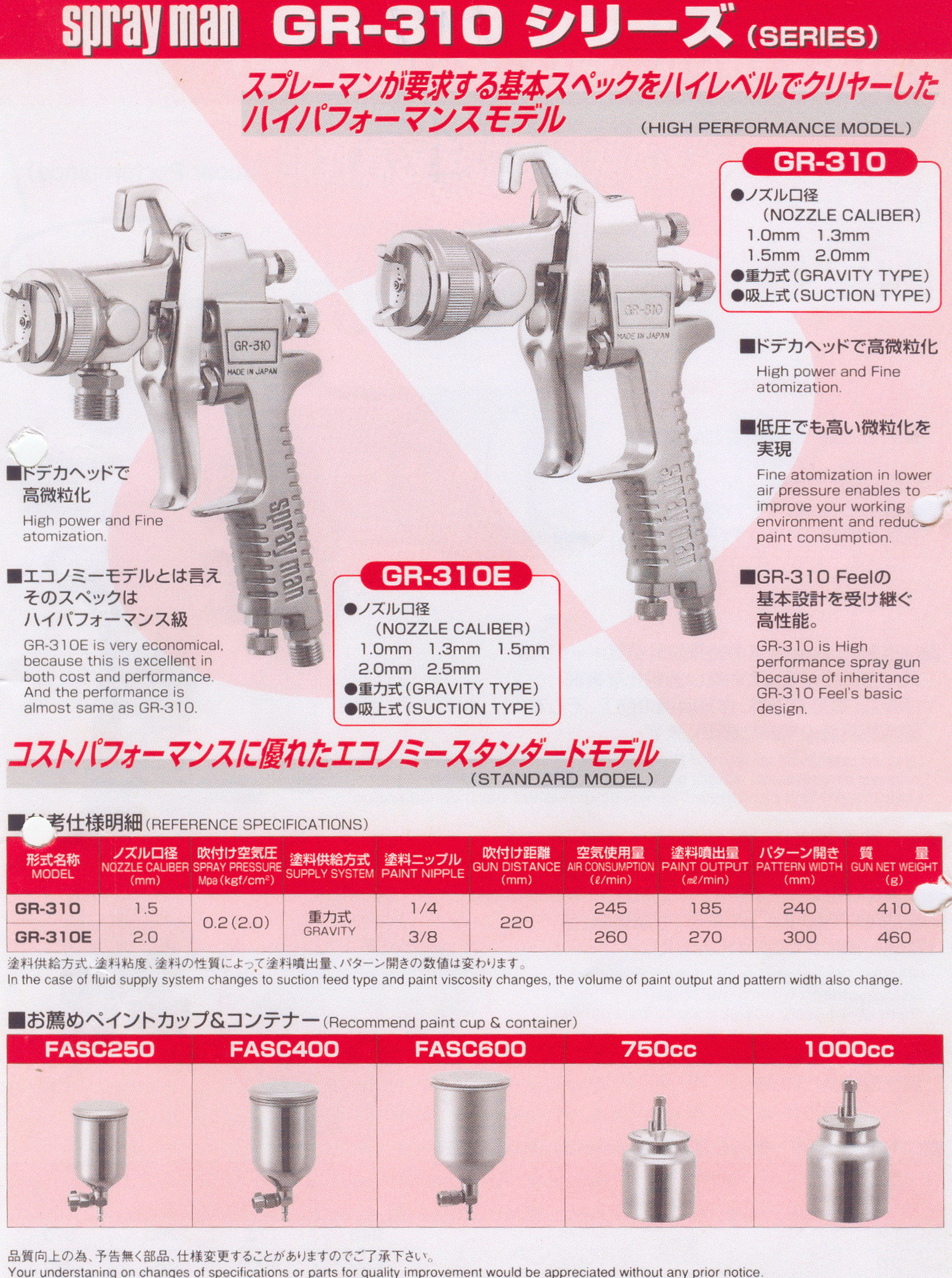 Thông số kỹ thuật sản phẩm Súng phun sơn GR310 -1.3: