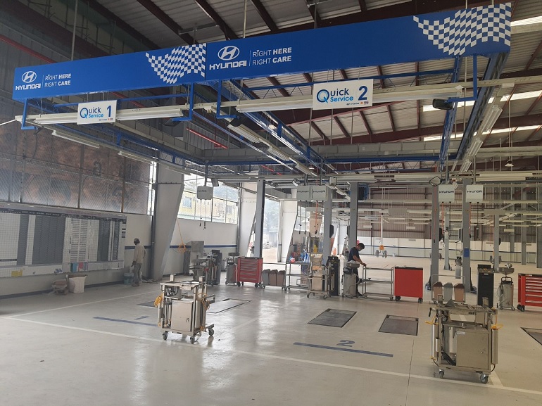 Bao gồm khung giá treo trần nhận diện thương hiệu Hyundai theo đúng tiêu chuẩn HTC