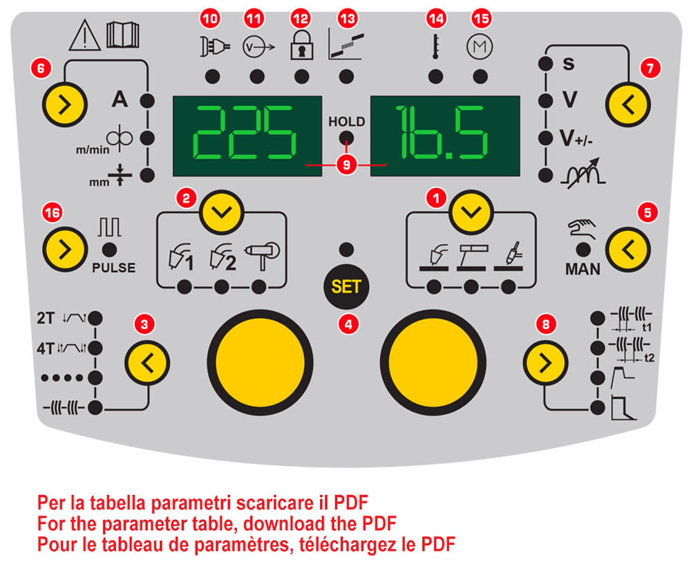 | Double pulsed welding (PULSEX2): | yes - (Torcia n° 2, Torch n° 2, Torche n° 2) |