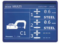MULTI MODE Độ dày của các tấm được hàn, cũng như các loại thép, là specifed cho mỗi tờ trong hội đồng. Máy xác định thông số hàn. |