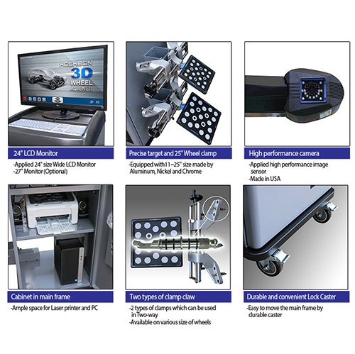 Hệ thống kiểm tra góc đặt bánh xe bằng máy tính, tối ưu hóa với 8-CCD nhận diện hình ảnh