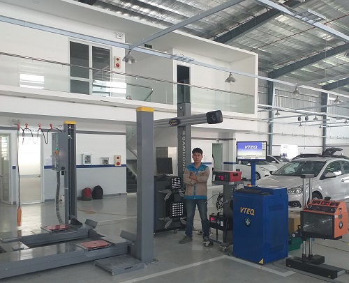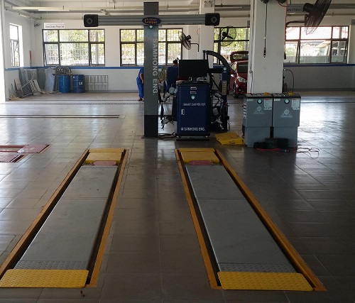 Hình ảnh lắp đặt bộ cân chỉnh góc đặt bánh xe 3D tại khách hàng: